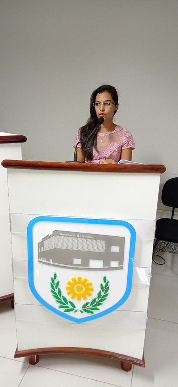 - A jovem Luciana Santana de Aquino Nogueira morada do bairro Jardim Bela Vista fez uso da palavra pedindo empenho dos Vereadores junto ao Executivo Municipal para que este atenda uma reivindicação dos moradores dos bairros Jardim Bela Vista e Roosevelt Porto providenciando a limpeza das ruas destas comunidades bem como a instalação de uma Unidade Básica de Saúde -UBS com equipe de profissionais de saúde para atender estas comunidades.