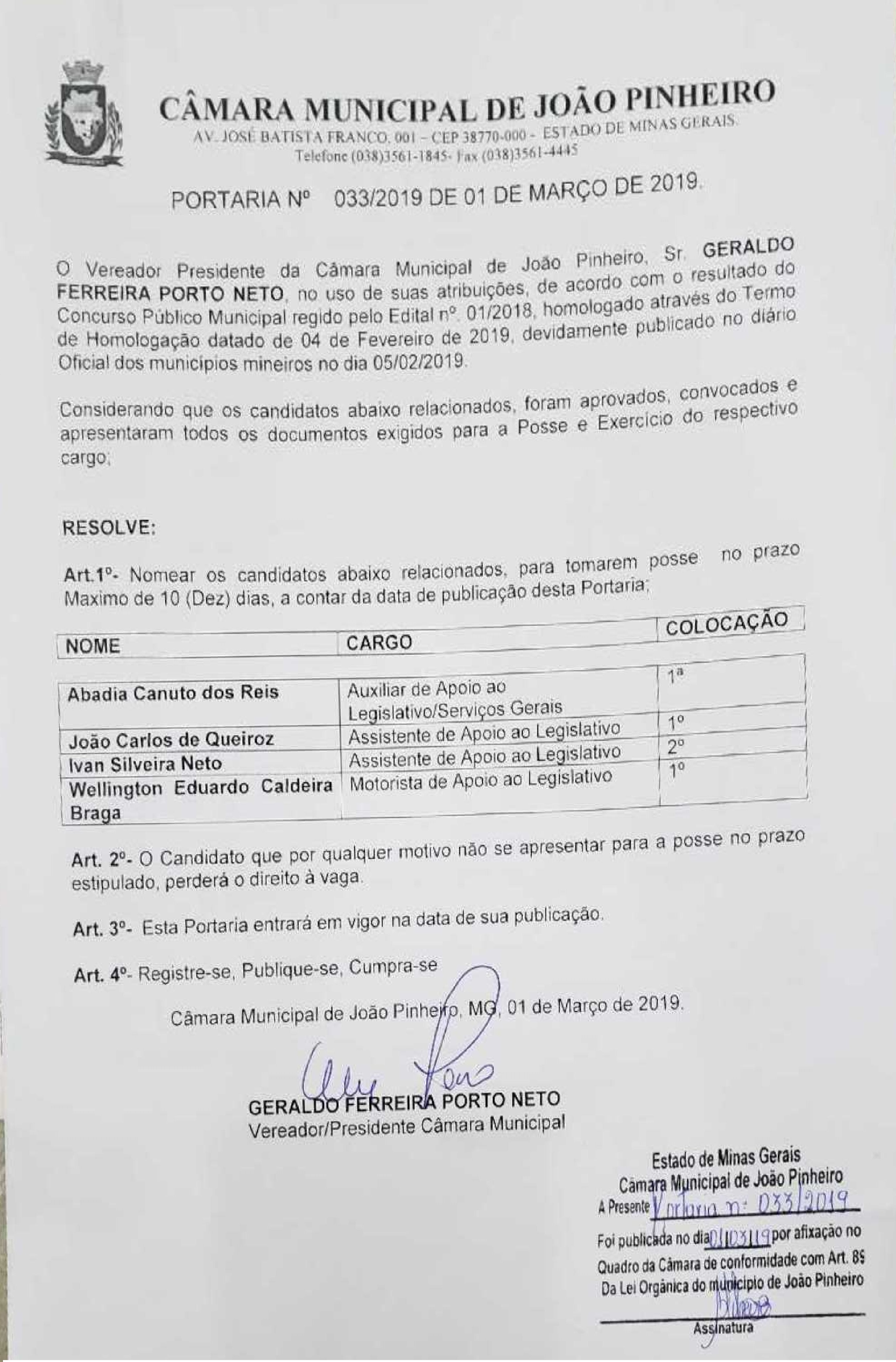 Portaria de convocação dos candidatos